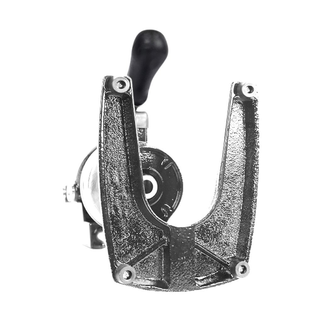- Sturdy cast iron base with a large opening for juice collecting